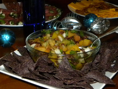 Canned tropical fruit, chopped onions, fresh cilantro, lime juice, cumin and chili powder and wala...a healthy and tasty salsa!